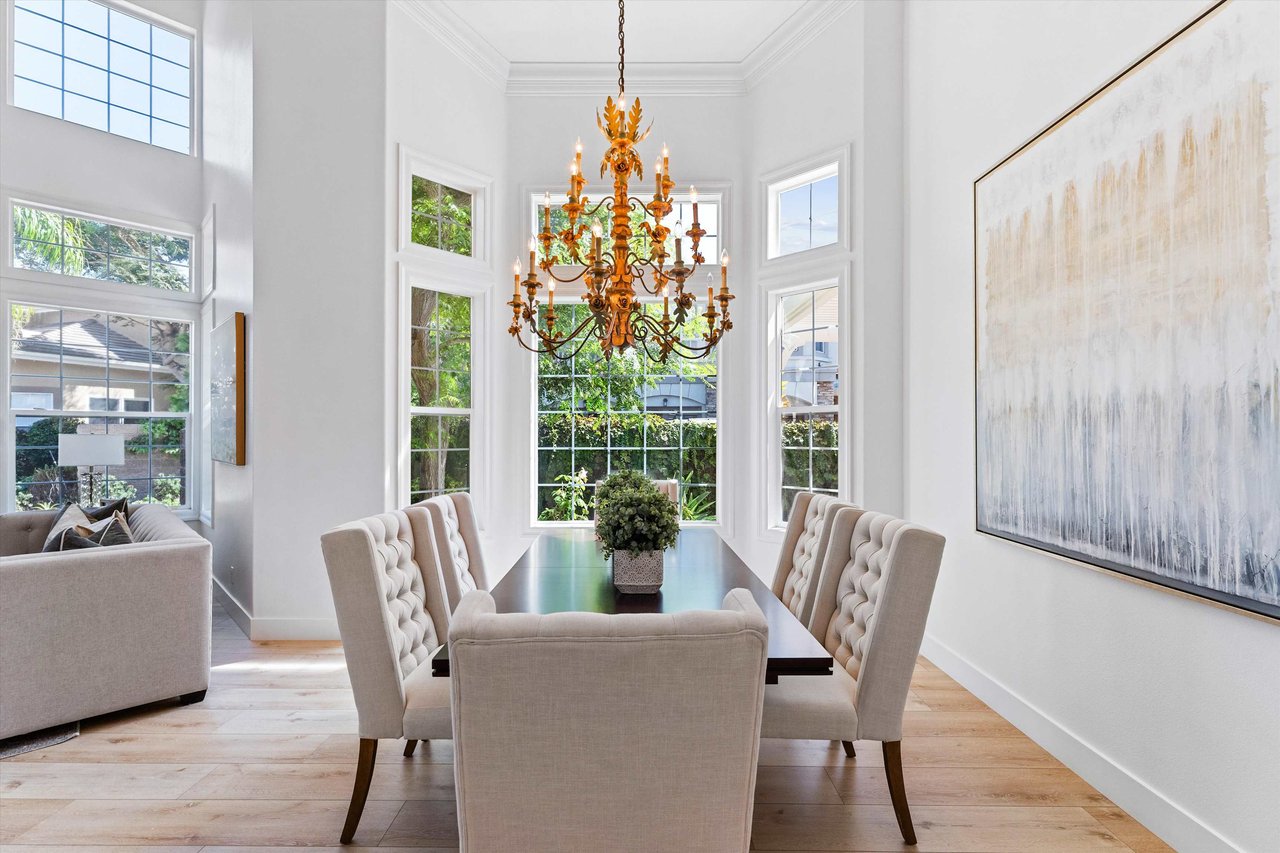 Upon entering through the double doors, you're greeted by a grand foyer with soaring high ceilings and a sweeping staircase. The formal living room features floor-to-ceiling windows and a cozy fireplace, adjacent to the expansive formal dining room, perfect for family gatherings. A butler’s pantry leads to the gourmet kitchen, equipped with state-of-the-art appliances, including a SubZero built-in fridge, gas cooktop, Bosch dishwasher, and double ovens. The kitchen is complete with a large island, walk-in pantry, and a breakfast nook with a bay window overlooking the resort-style backyard.