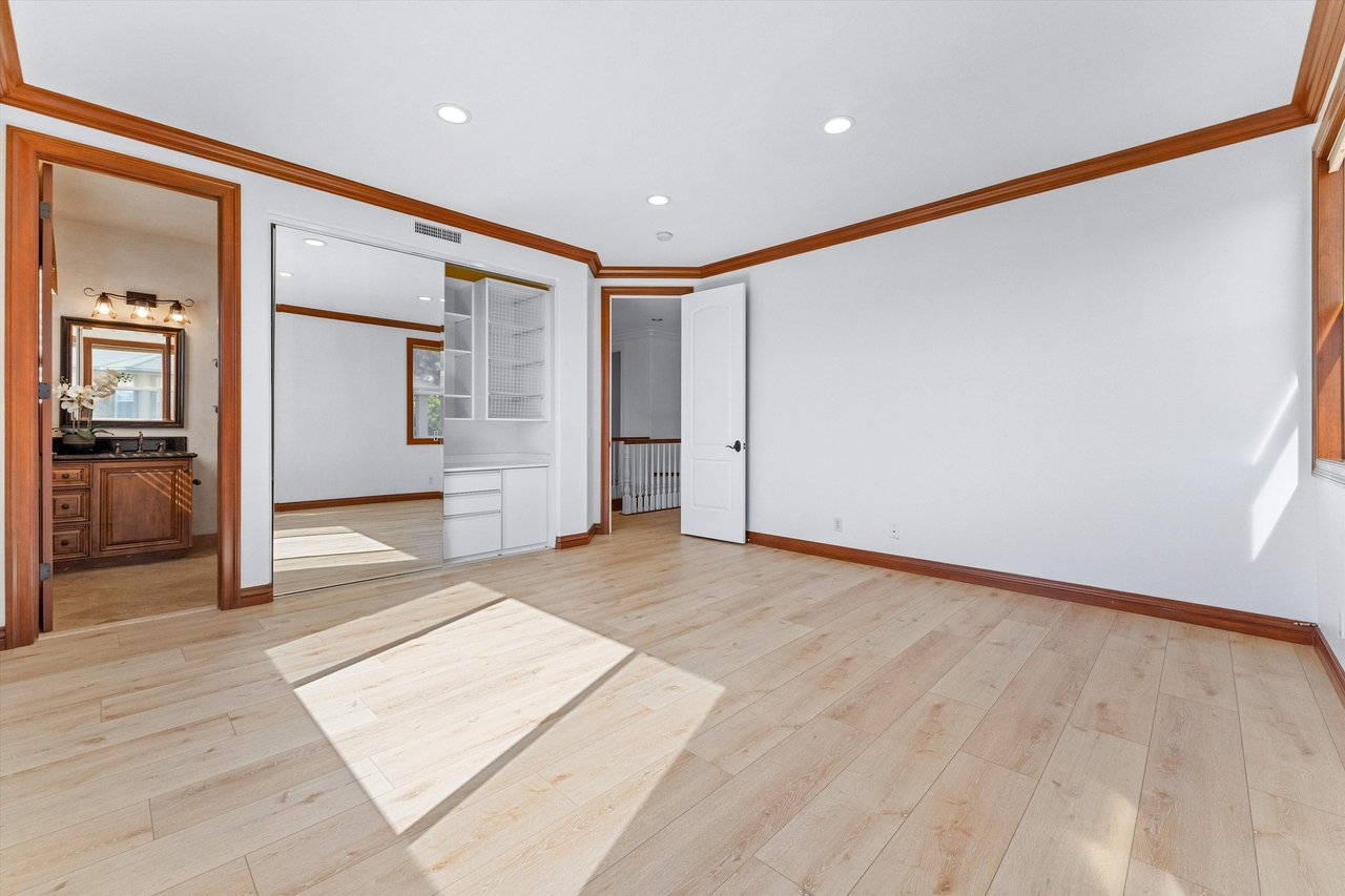 This stunning residence offers over 3,500 sqft of luxurious living space on a generous lot spanning over 8,400 sqft in the exclusive Equestrian neighborhood of Edwards Hill. With 5 spacious bedrooms and 4 1/2 bathrooms, this open floor-plan home includes a highly sought-after downstairs bedroom with a full bath and private entrance leading to a peaceful courtyard with a water fountain. Meticulously maintained, the home boasts all-new paint, luxury vinyl plank flooring throughout, and elegant crown molding.